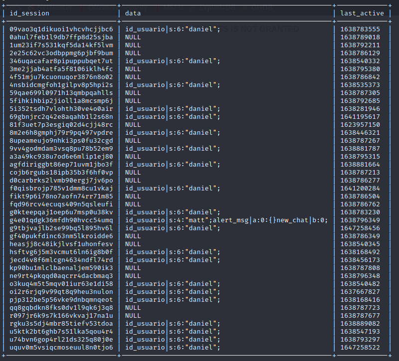 Dumping the sessions_php table gave me session id’s for both matt and daniel.